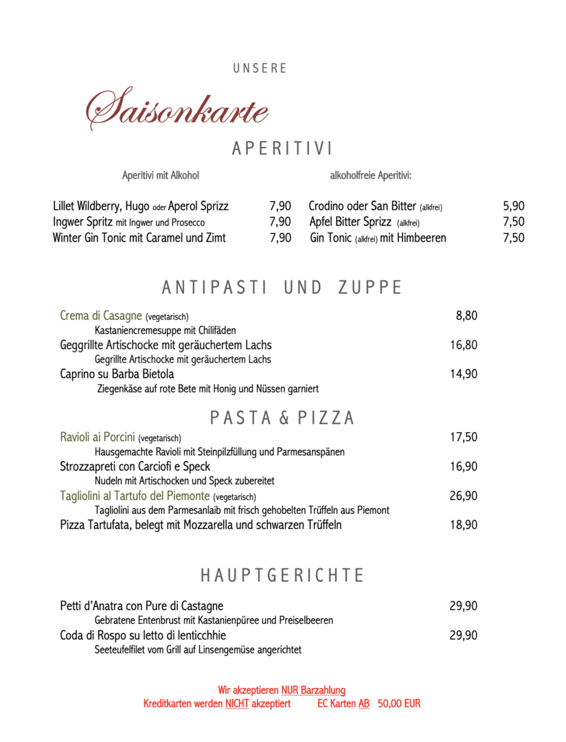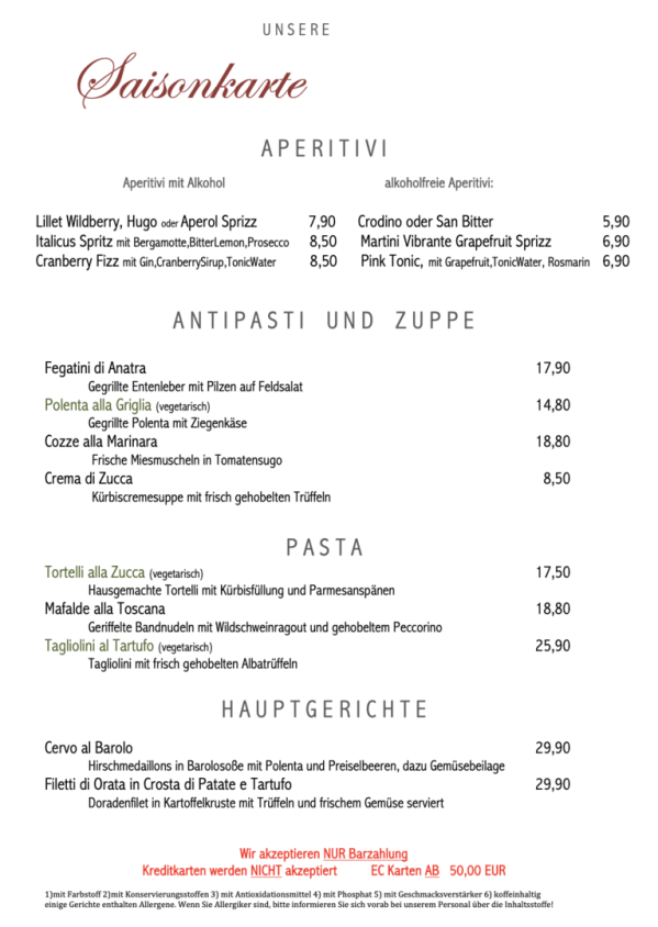 Minikarte mit außer Haus Preisen: